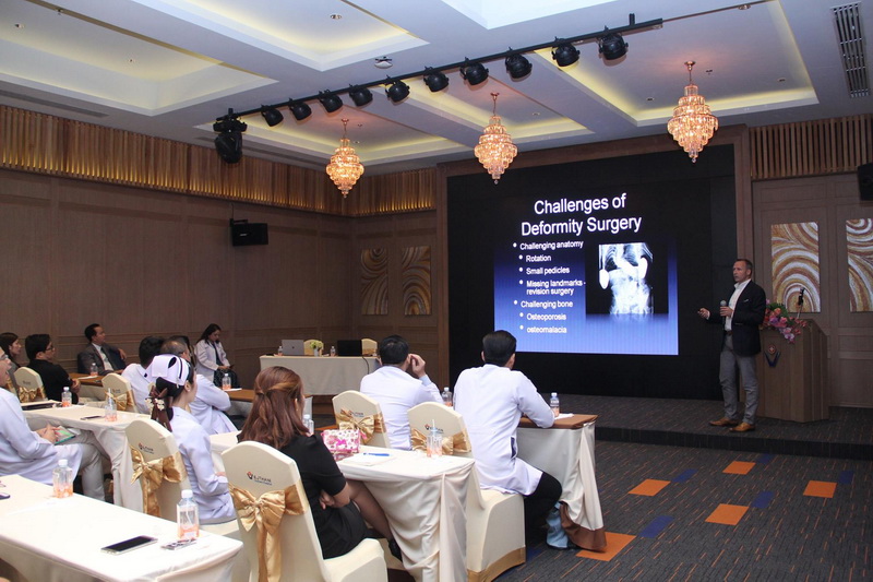 เมื่อวันที่ 24 พฤษภาคม2560 โรงพยาบาลเวชธานี ได้รับเกียรติจากศาสตราจารย์นายแพทย์ เชน เบิร์ช (Professor Shane Burch, M.D.) ศัลยแพทย์กระดูกและข้อ แห่งราชวิทยาลัยประสาทศัลยแพทย์ประเทศแคนาดาเป็นวิทยากรพิเศษ บรรยายในหัวข้อ"O-Arm and Navigation System in Spine Surgery" ณ ห้องประชุมสายหยุดชั้น 8 โรงพยาบาลเวชธานี ซึ่งได้รับความสนใจจากบุคลากรทางการแพทย์เข้าร่วมฟังสัมมนาในครั้งนี้ โดยเนื้อหาการสัมมนากล่าวถึงภาพรวมของเครื่องเอกซ์เรย์คอมพิวเตอร์ O-ARM และการทำงานร่วมกับเทคโนโลยีนำวิถีในการผ่าตัดStealth Navigation เพื่อยกระดับให้การผ่าตัดกระดูกสันหลังมีความแม่นยำและปลอดภัยมากที่สุด ซึ่งโรงพยาบาลเวชธานีเองมีการใช้เครื่อง O-ARM และเทคโนโลยีขั้นสูงStealth Navigation ในการผ่าตัดกระดูกสันหลังด้วยเช่นกันผู้ป่วยจึงสามารถมั่นใจได้ว่าจะได้รับการรักษาที่ดีที่สุดจากโรงพยาบาลเวชธานีอย่างแน่นอน