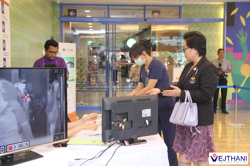The Chief Operating Officer of Vejthani Hospital, Dr. Tullawat Pacharapa welcomes Sqn. Ldr. Boonruang Triruangworawat, the Director General of Department of Health and Service Support to Vejthani Hospital.