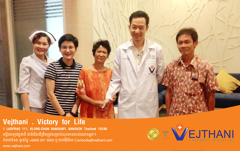 ជាចុងក្រោយខ្ញុំសូមអរគុណសារជាថ្មីដល់មន្ទីរពេទ្យ និងបុគ្គលិកមន្ទីរទេព្យ (វេជ្ជថានី) ទាំងអស់ដែលបានខិតខំអស់ពីសមត្ថភាពក្នុងការតាមដាន និងព្យាបាលម្តាយខ្ញុំ។ ហើយខ្ញុំសូមផ្តាំផ្ញើរដល់លោកពូ អ្នកមីង និងបងប្អូនផ្សេងៗទៀតថា ប្រសិនបើមានសមាជិកគ្រួសារមានជំងឺ សូមអញ្ជើញទៅពិគ្រោះយោបល់, ពិនិត្យ និងព្យាបាល នៅមន្ទីរពេទ្យវេជ្ជថានីចុះពិតជាមិនខុសបំណងទេ ព្រោះមន្ទីរពេទ្យមានឧបករណ៏ទំនើប ជាពិសេសបុគ្គលិកពេទ្យទាំងអស់មានជំនាញច្បាស់លាស់ ហើយសេវារបស់ពេទ្យរហ័សទាន់ចិត្ត។